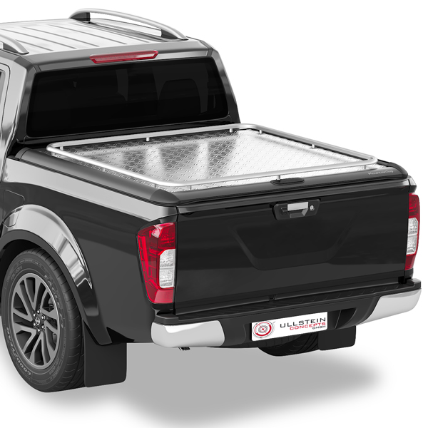 La superficie a scacchiera in alluminio, resistente alle intemperie e durevole , può essere utilizzata anche come piano di lavoro. Con un peso netto di soli 26 kg circa, la copertura Style HD può trasportare carichi fino a 150 kg sulla superficie.