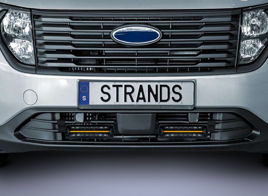 Il kit di montaggio dei LED è stampato in 3D direttamente presso Strands in Svezia da plastica di alta qualità per adattarsi perfettamente alla Transit Courier. Per l'installazione, la griglia del radiatore deve essere tagliata secondo le istruzioni di installazione e nella maggior parte dei casi non sarà necessario rimuovere la griglia del radiatore del veicolo per l'installazione.