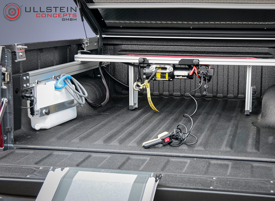 Seilwindensystem TJM 4000 inkl. Träger breit, silber mit Kabelstrang für Cargo-Schienensystem