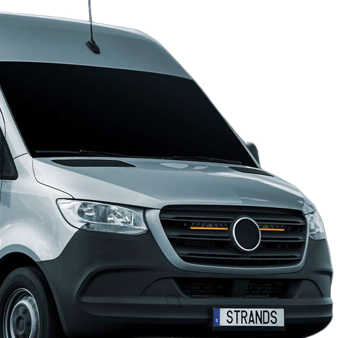 Aumentate la sicurezza durante la guida notturna e in condizioni di scarsa visibilità con il kit Strands per la griglia del radiatore a LED per la Mercedes Sprinter dal 2022.