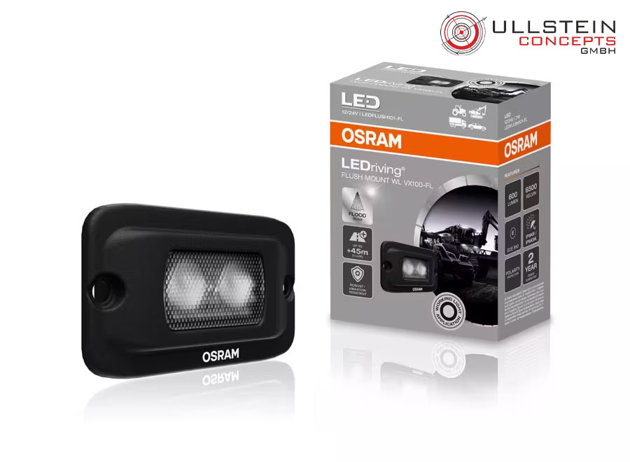 Dotato di una lente in policarbonato infrangibile e di un alloggiamento in alluminio pressofuso, LEDriving Flush Mount WL VX100-FL è robusto e resistente alle vibrazioni per sopportare le condizioni più difficili. È stato testato e convalidato con le più alte classi di protezione IP6K8 e IP6K9K nel nostro laboratorio di simulazione ambientale certificato DIN per influenze esterne estreme quali acqua, polvere, urti, calore, freddo e vibrazioni permanenti. Inoltre, OSRAM fornisce una garanzia di 2 anni sul prodotto - condizioni di garanzia.