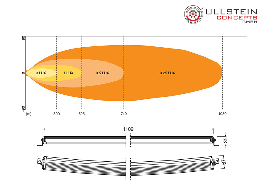 Resa luminosa a 1 Lux (lunghezza/ larghezza): 525 m