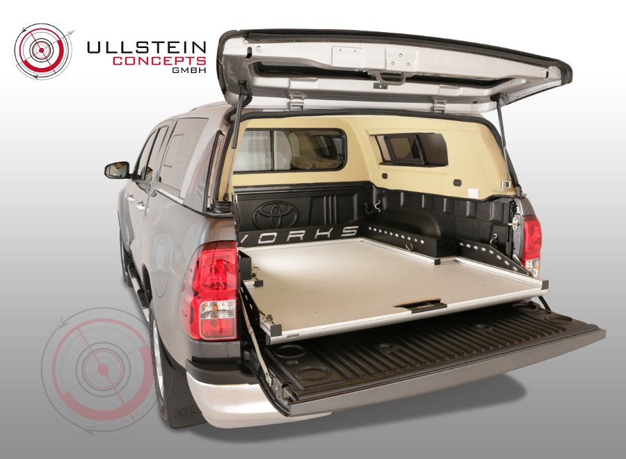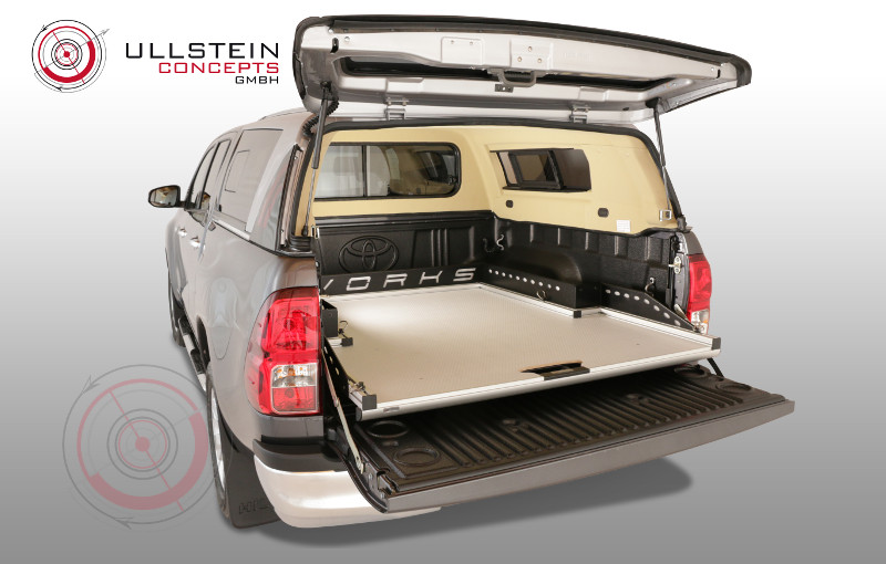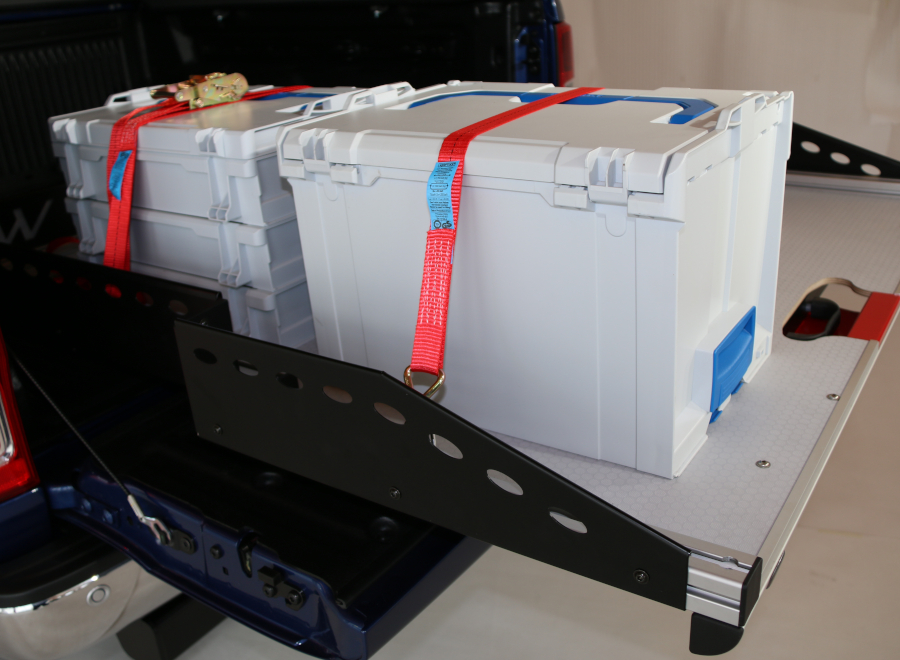 Con il nuovo Pianale Estraibile WORKS, puoi caricare e fissare il tuo carico in modo professionale nel tuo pick-up. Grazie alla sua costruzione in alluminio, il nuovo sistema permette infinite personalizzazioni individuali per un uso specifico dello spazio di carico del pick-up. Un grande vantaggio del nostro prodotto è la sua forma: grazie alla conicità dell'estensione della zona di carico tra i passaruota, lo spazio di carico è perfettamente utilizzato e nella parte anteriore, nella zona del portellone, c'è ancora più spazio in larghezza per il vostro carico.