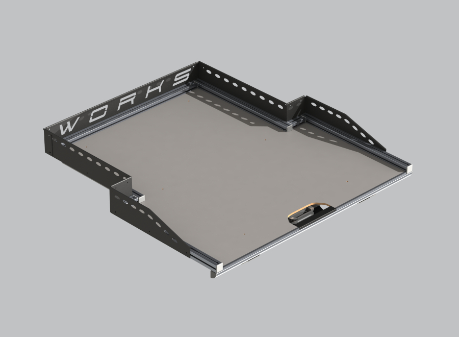 • Pianale scorrevole preassemblato WORKS con piattaforma grigia da 10mm