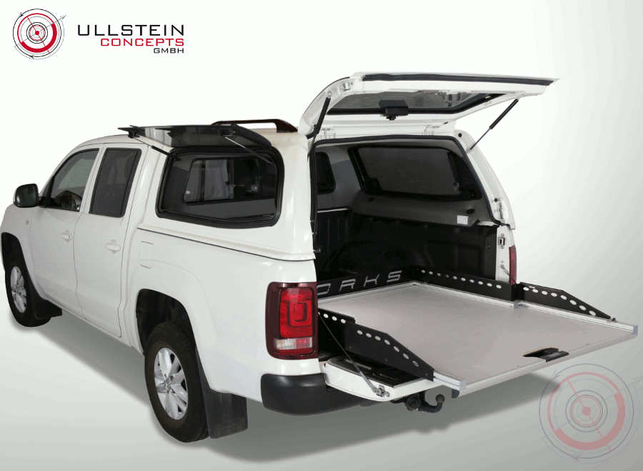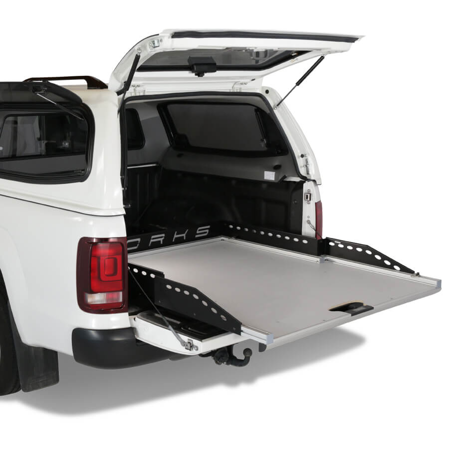 Con il nuovo Pianale Estraibile WORKS, puoi caricare e fissare il tuo carico in modo professionale nel tuo pick-up. Grazie alla sua costruzione in alluminio, il nuovo sistema permette infinite personalizzazioni individuali per un uso specifico dello spazio di carico del pick-up. Un grande vantaggio del nostro prodotto è la sua forma: grazie alla conicità dell'estensione della zona di carico tra i passaruota, lo spazio di carico è perfettamente utilizzato e nella parte anteriore, nella zona del portellone, c'è ancora più spazio in larghezza per il vostro carico.
