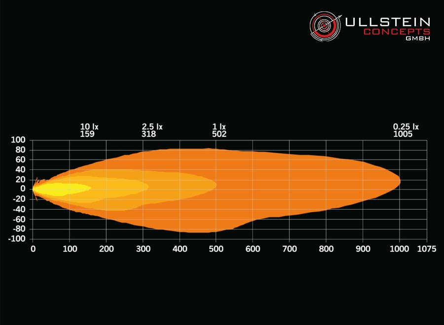 L'angolo di emissione ottimizzato raggiunge 1 lux a 502 metri e genera una luminosità di 10.500 lm con una temperatura di colore di 5700K. Il fascio di luce preciso e luminoso garantisce un'illuminazione ottimale sulle strade pubbliche. Con la classe di protezione IP67, il proiettore è estremamente robusto e adatto all'uso continuo in condizioni atmosferiche avverse.