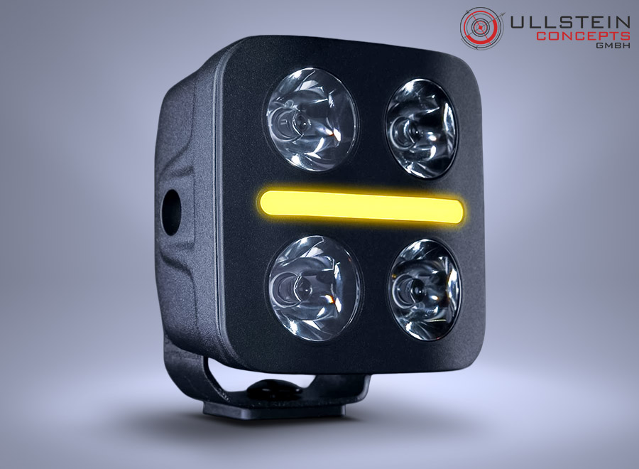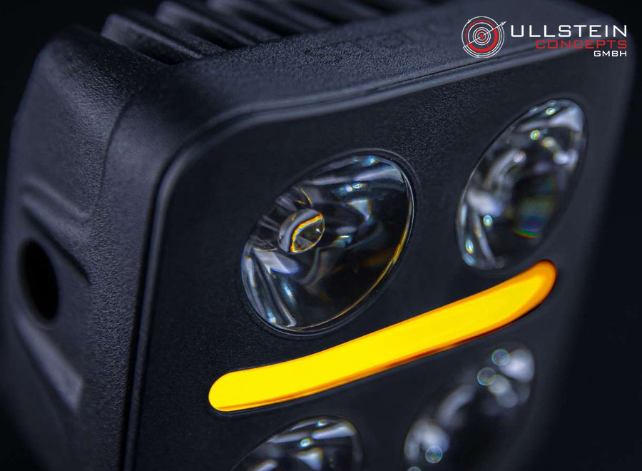 L'alloggiamento arrotondato permette all'acqua di scivolare via dalla lente e garantisce una chiara visibilità. I materiali di alta qualità e la certificazione IP68/69K garantiscono una lunga durata. La luce di posizione giallo e bianco crea un effetto luminoso e un look di grande effetto.