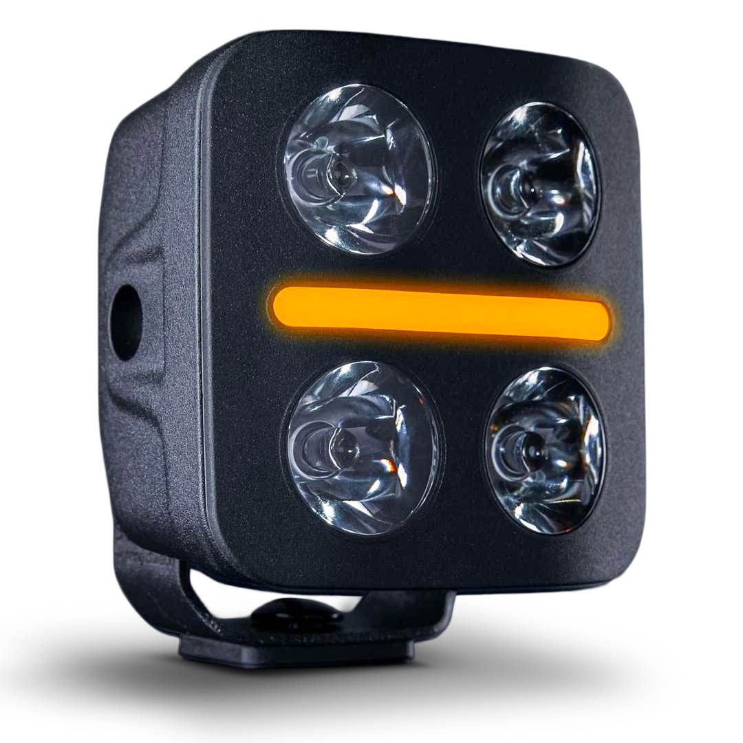 L'alloggiamento arrotondato permette all'acqua di scivolare via dalla lente e garantisce una chiara visibilità. I materiali di alta qualità e la certificazione IP68/69K garantiscono una lunga durata. La luce di posizione ambra e bianco crea un effetto luminoso e un look di grande effetto.