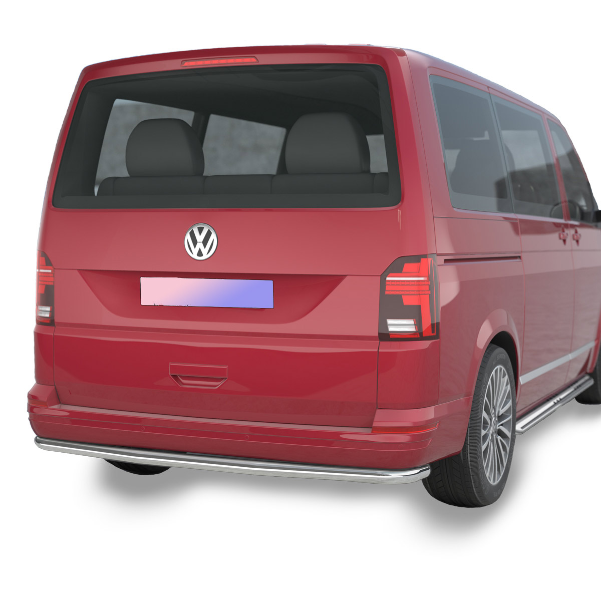 Barra di protezione posteriore in acciaio lucidato a specchio. La sofisticata lucidatura a mano delle nostre parti in acciaio assicura una protezione ottimale dalla corrosione. Ii paraurti è collaudato dal TÜV e viene fornito con perizia TÜV. Lo sviluppo computerizzato del prodotto assicura una forma perfettamente adattabile e un design armonico. Montaggio semplice in circa 30 - 60 minuti. Per Volkswagen T6 & T6.1 modello. Non mountabile con gancio traino o la preparazione per gancio da traino, montabile con Parktronic.