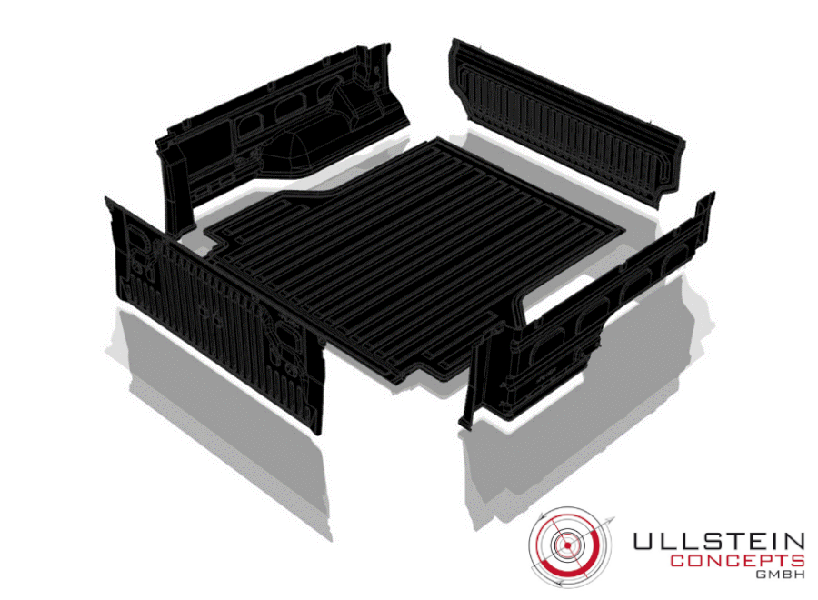 Il vassoio protettivo del vano di carico in cinque parti in plastica di polietilene consente un montaggio molto più comodo e semplice. Le singole parti vengono assemblate nell'area di carico mediante una chiusura a scatto. In questo modo si può spesso evitare lo smontaggio normalmente richiesto delle coperture del vano di carico già installate. Grazie al design ben congegnato, che crea scanalature cave e cavità tra la lamiera e la lamiera del veicolo, la lamiera di protezione assorbe gli urti in modo ottimale, protegge la lamiera del veicolo e consente un'eccezionale resistenza alla rottura. Ovviamente con parte del portellone e materiale di montaggio. Non è necessario forare la lamiera del veicolo. Grazie all'imballaggio unico in una scatola, è possibile una consegna economica. Ovviamente con parte del portellone.