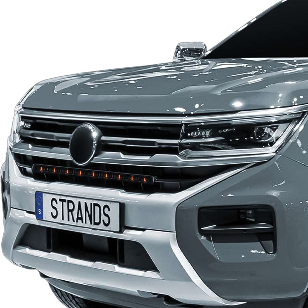 Aumentate la sicurezza durante la guida notturna e in condizioni di scarsa visibilità con il kit Strands per la griglia del radiatore a LED per la VW Amarok a partire dal modello 2017.