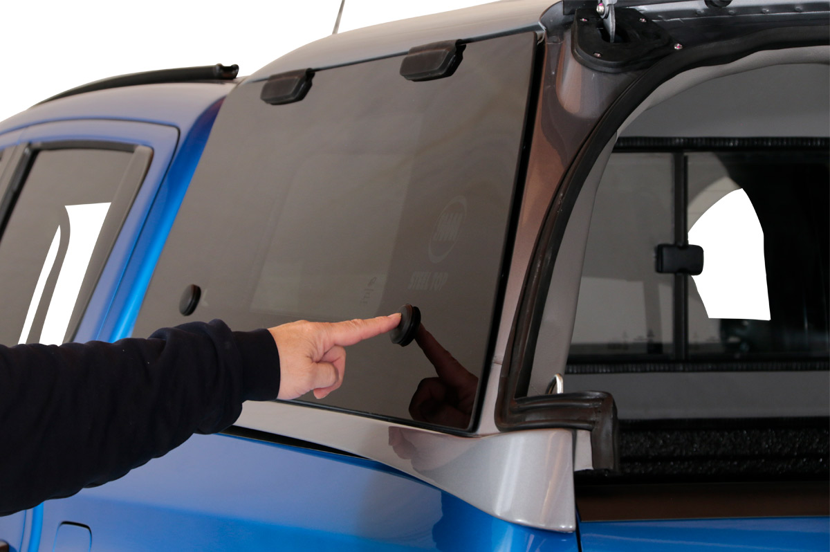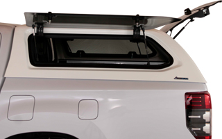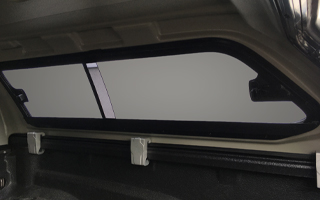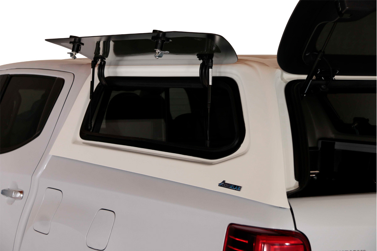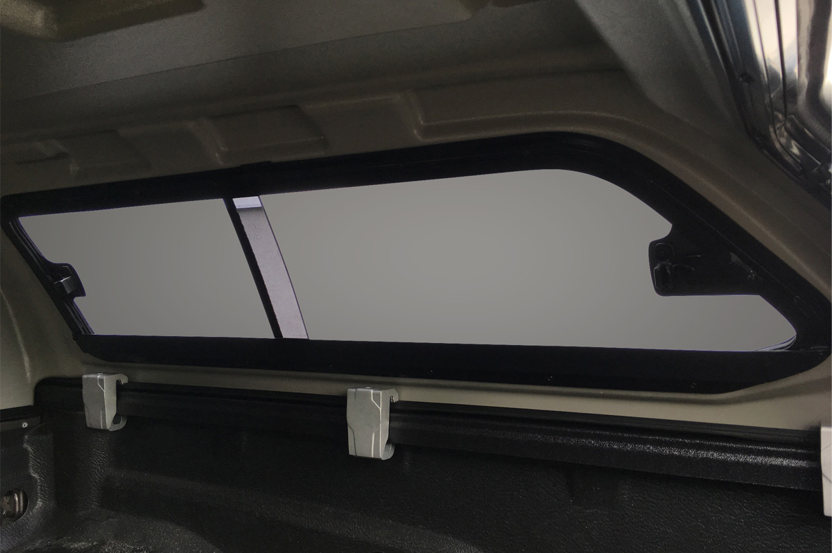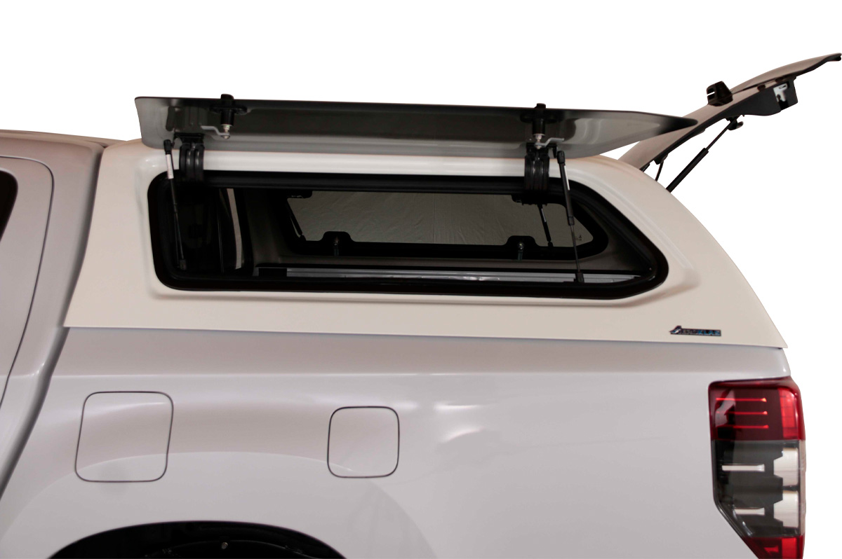 Linked to the central locking system, the SMM V4 is equipped with a third brake light, automatic interior lighting and a rear window defogger. The high-quality vinyl lining and tinted windows also give the Mitsubishi L200 canopy a sporty and elegant look.