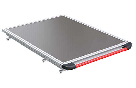 Die ausziehbare Ladefläche WORKS Wide verfügt über eine fahrzeugspezifische Verjüngung der Ladefläche und nutzt somit den vorhandenen Laderaum bestmöglich aus. Die in der Premium-Edition verbauten Seitenbleche bieten zusätzliche Sicherungspunkte und verhindern ein verrutschen der Ladung.
