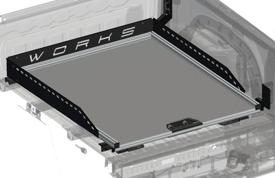 Die Variante WORKS Straight ist optimiert für Fahrzeuge mit Laderaumschutzwannen, kann aber auch für blanke Ladeflächen bzw. mit einer „gesprühten“ Laderaumschutzwanne verwendet werden. Besonders in der Konstellation mit einer werksmäßigen Kunststoffwanne ist die Breite zwischen den Radhäusern identisch mit der Breite des Heckklappenausschnitts. Hierdurch haben wir uns entschlossen eine genau hierfür abgestimmte Variante "Straight" zu entwickeln. Dennoch verlieren wir bei all unseren Auszügen nie unser Ziel aus dem Auge, die Platzmöglichkeiten optimal auszunutzen.