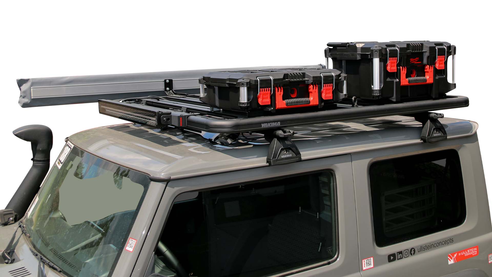 Auch erhältlich im Komplettset für den Suzuki Jimny GJ mit passenden Yakima Querträgern, Befestigungsfüßen und Plattform.
