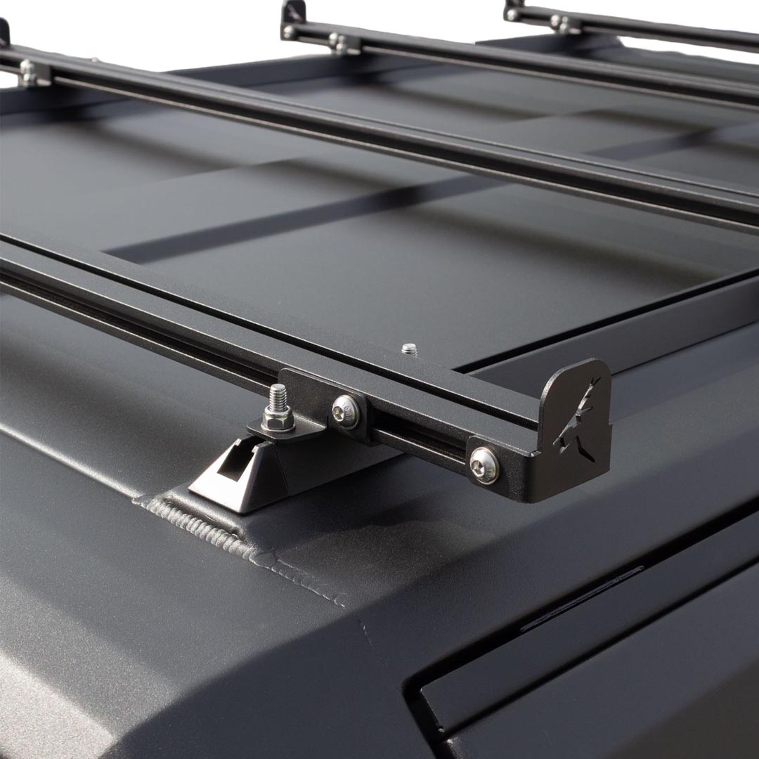 The sturdy crossbars are ideal for safely transporting luggage and other items such as sports equipment or a roof tent on your pickup canopy roof.
