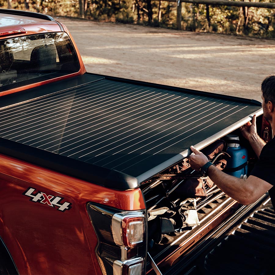 The Ford F150 EVOm roller shutter is light and the most secure choice of material. Additionally, the EVOm roll cover introduces several new security features. The handle has been placed on the underside of the rear profile, removing the need for an external handle, thus removing a target for forced openings. An even bigger target are the slats, which can normally be cut open with a strong knife and a lot of force. The EVOm makes this security flaw a thing of the past by introducing knife-proof interlocking aluminium slats!