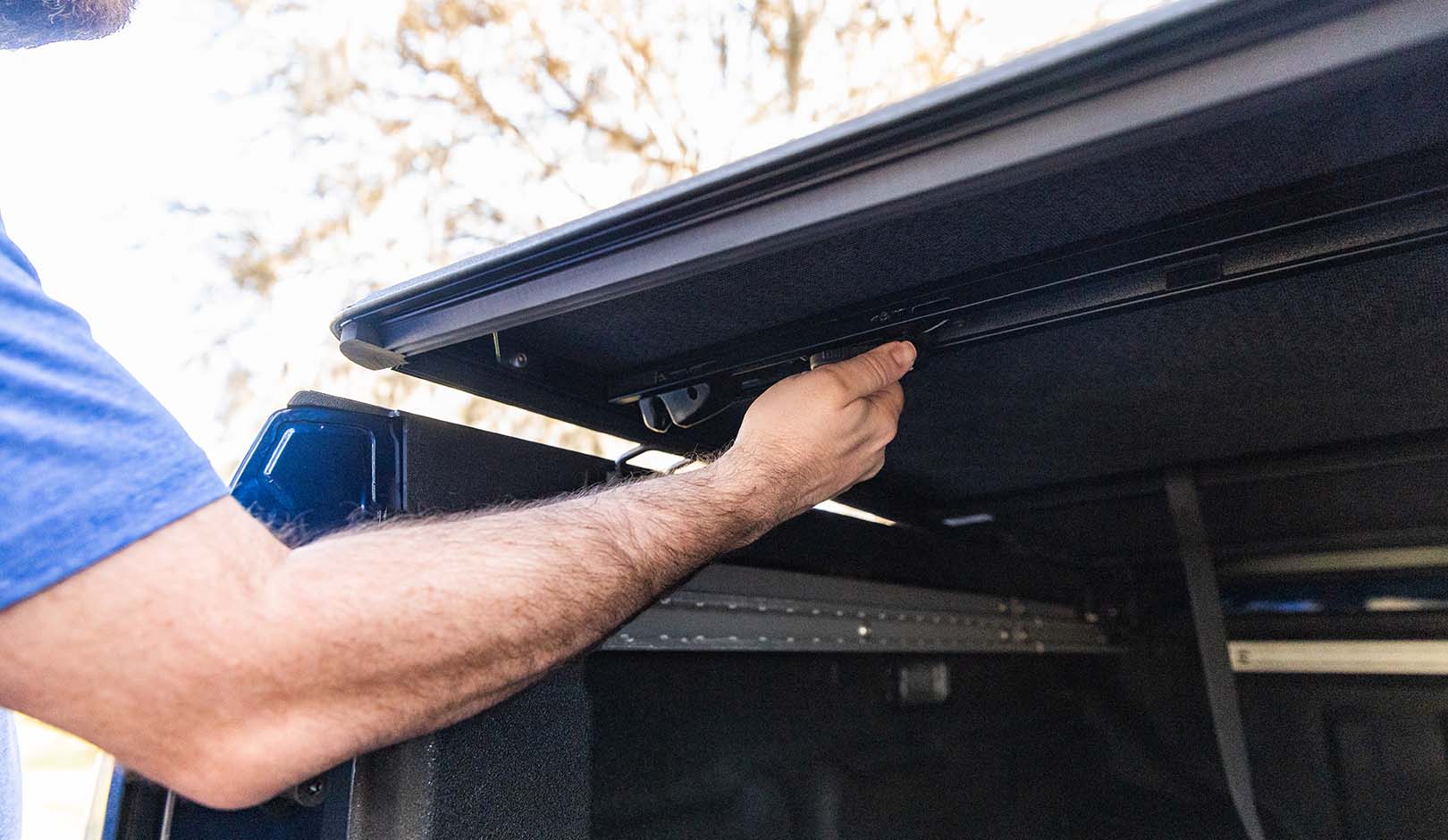 The Trifecta 2.0 offers one of the quickest installations of all tonneau covers on the market with Extang’s proprietary, tool-free Jaw-Grip and EZ-Lock Clamps. Operating the Trifecta 2.0 is just as intuitive—simply release the rear EZ-Lock Clamps and fold the cover toward the bulkhead for ⅔ bed access.