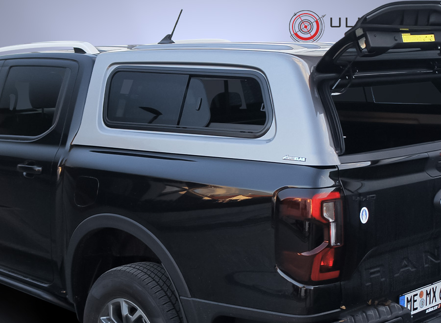 Aeroklas hard top canopies for the new Ford Ranger from 2023 feature a double-shell technology, and are therefore exceptionally impact and crack resistant. Each shell is thermoformed from a single piece of ABS, with no joints or weak spots. The canopy has been tested in a pendulum test with a load of 200 kg, with the impressive result of an intact shell without cracks.