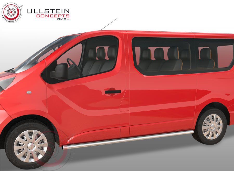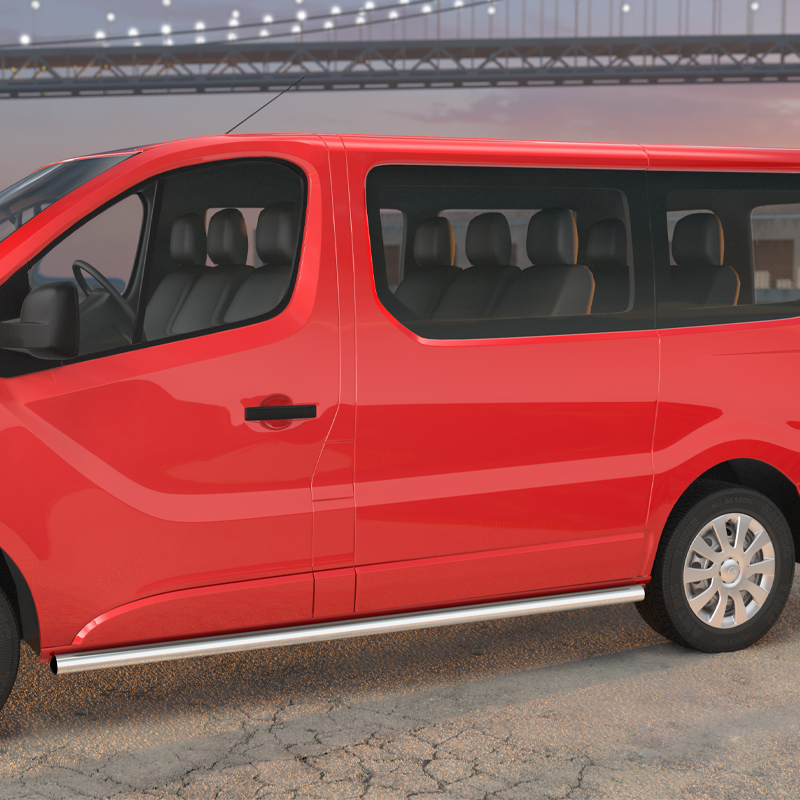 Side protection bar made from high quality hand polish stainless steel - for a beautiful mirror finish and an exceptional corrosion protection. The product is finished with black end caps at either end of the sidebar. The computer-aided development provides a perfect fit and design. This product comes with TÜV approval documents. The fitting instruction for an easy assembly in 30-60 minutes is included. For Nissan NV300 ex 2017 and 2019.