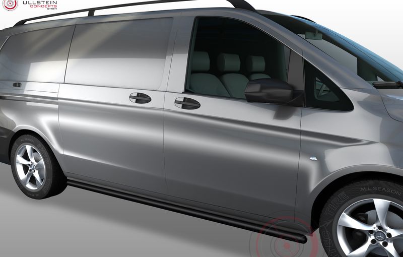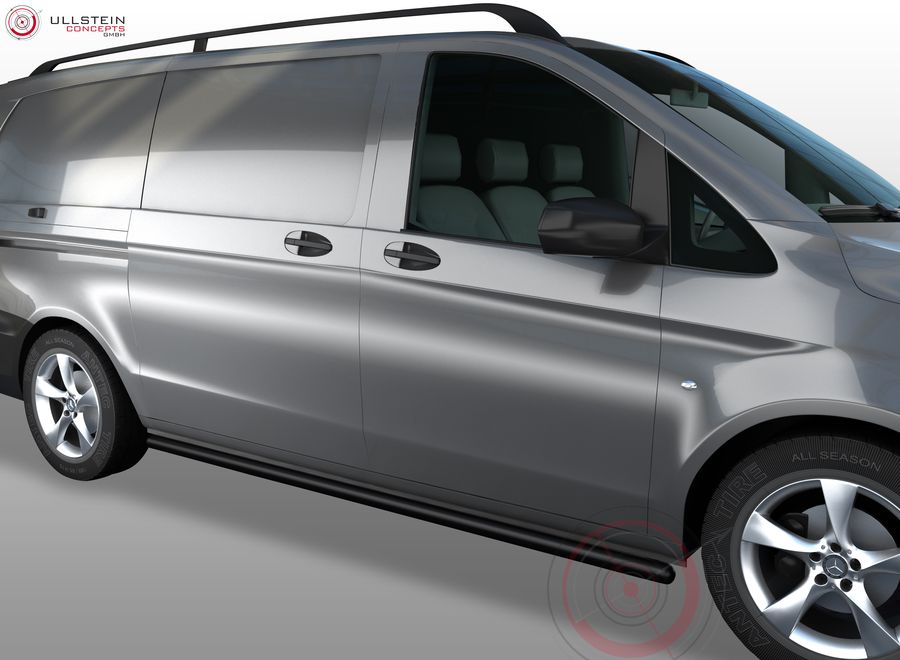 Side protection bars black coated for exceptional corrosion protection. The computer-aided development provides a perfect fit and design. Comes with TÜV approval documents. Included fitting instruction for an easy fitting in 30-60 minutes. For Mercedes Vito ex model 10/2014.