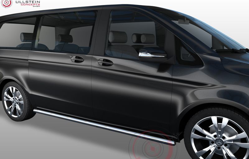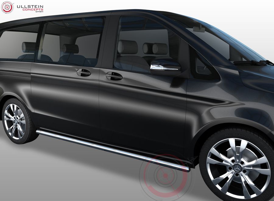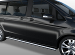 Side protection bar made from high quality hand polish stainless steel - for a beautifull mirror finish and a exceptional corrosion protection. The computer-aided development provides a perfect fit and design. Comes with TÜV approval documents. Included fitting instruction for an easy fitting in 30-60 minutes. For the Mercedes V-Klasse ex model 05/2014.