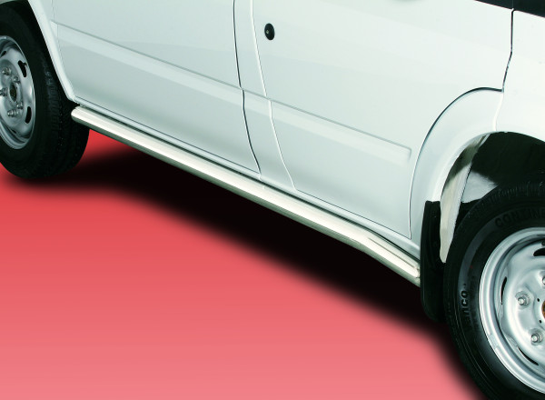 Side protection bar made from high quality hand polish stainless steel - for a beautiful mirror finish and an exceptional corrosion protection. The computer-aided development provides a perfect fit and design. This product comes with TÜV approval documents. The fitting instruction for an easy fitting in 30-60 minutes is included. For the Ford Transit model 2006.