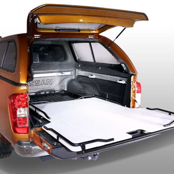 The extendable truck bed slide CLASSIC lets you load and secure your cargo quickly and easily, and can also facilitate customised van racking solutions, if required. The platform can be locked into five different positions and is retractable up to 2/3 in total, making it easily accessible from all sides.