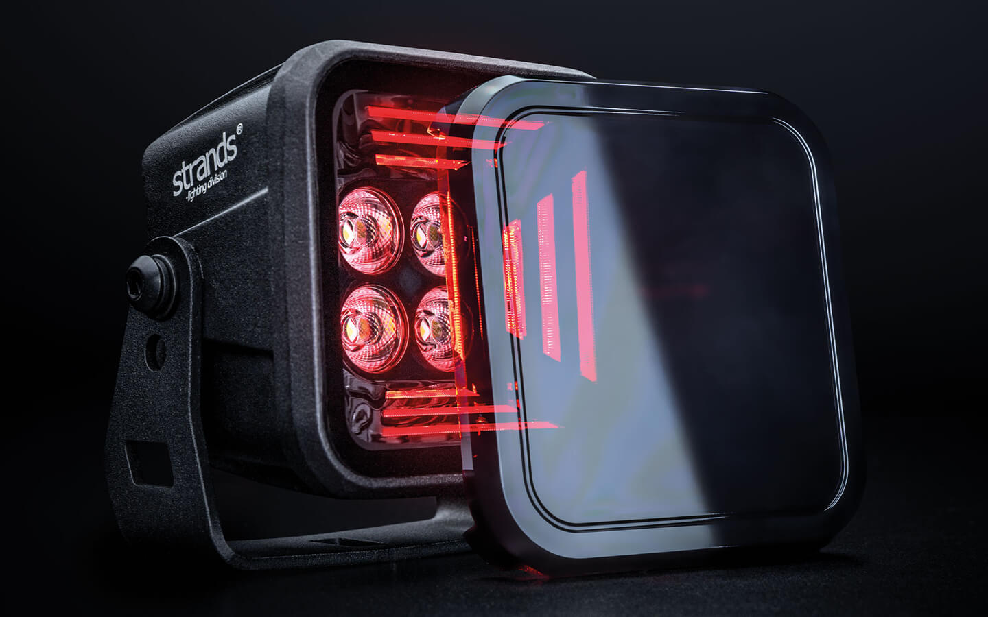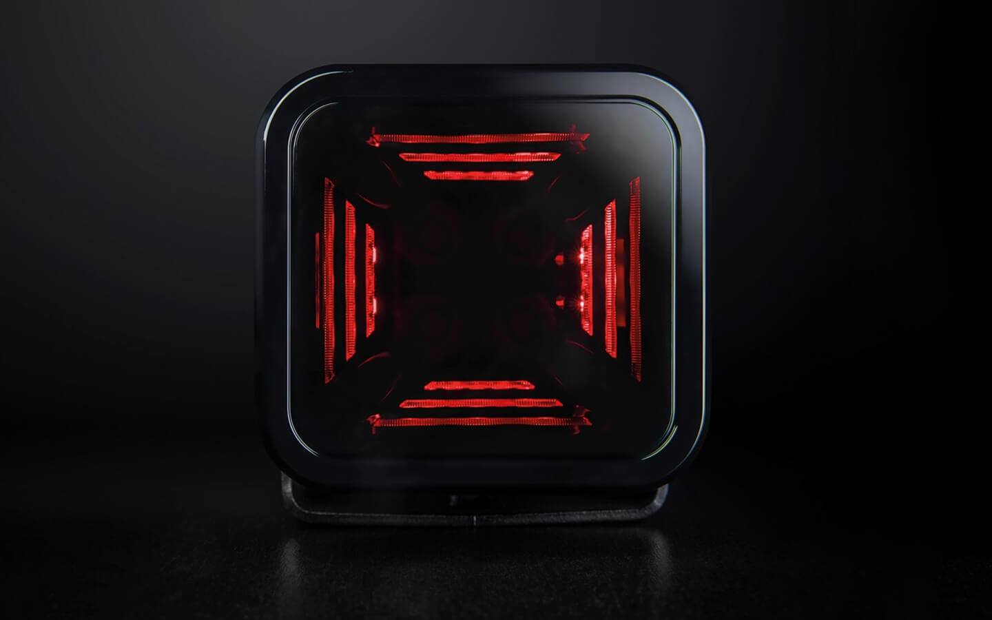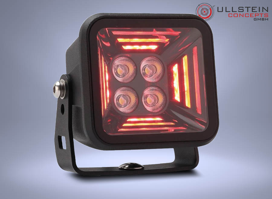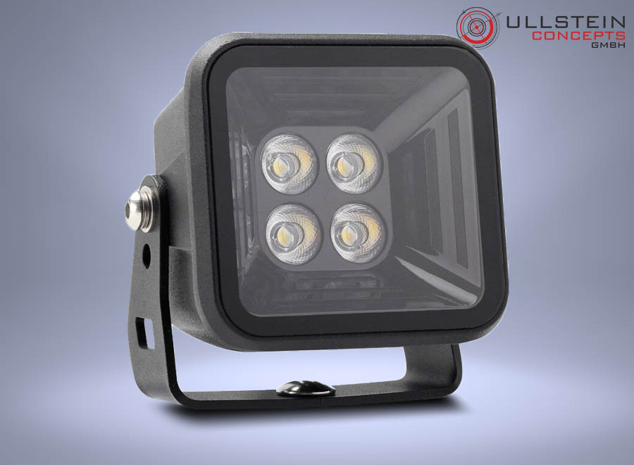 The minimalistic cube-shaped design impresses with a dark look. The housing is equipped with stone chip protection which is very useful in off-road use.