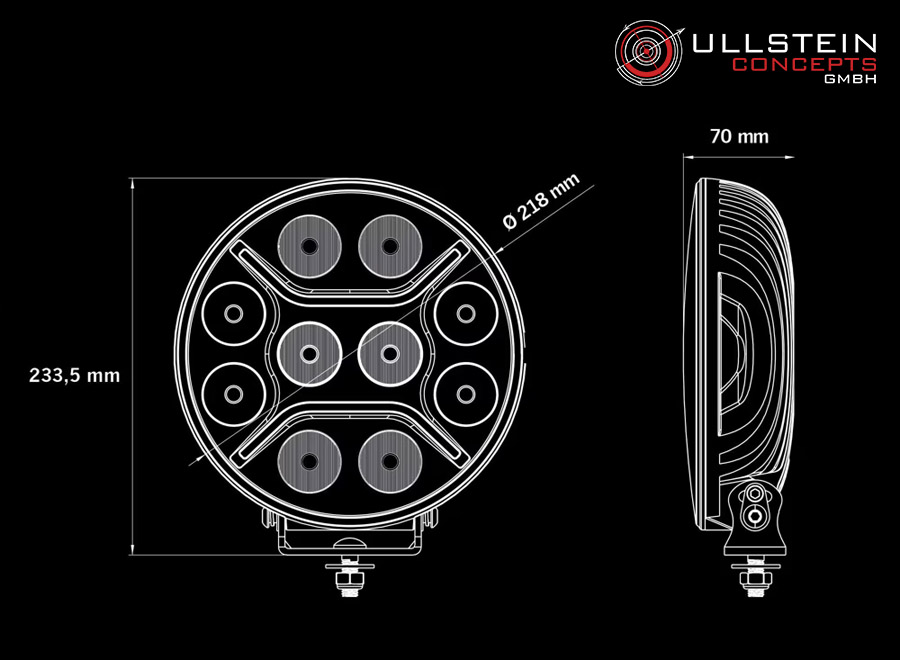 Dark Knight Intense 9 inch - The round LED driving lamp ensures safe driving on motorways, country roads and forest tracks.