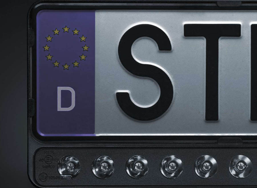 The Nuuk E-Line Lightbar is already integrated into the licence plate holder. The slightly curved profile and adjustable screws allow easy installation on most vehicles with an EU standard licence plate (520x110cm).