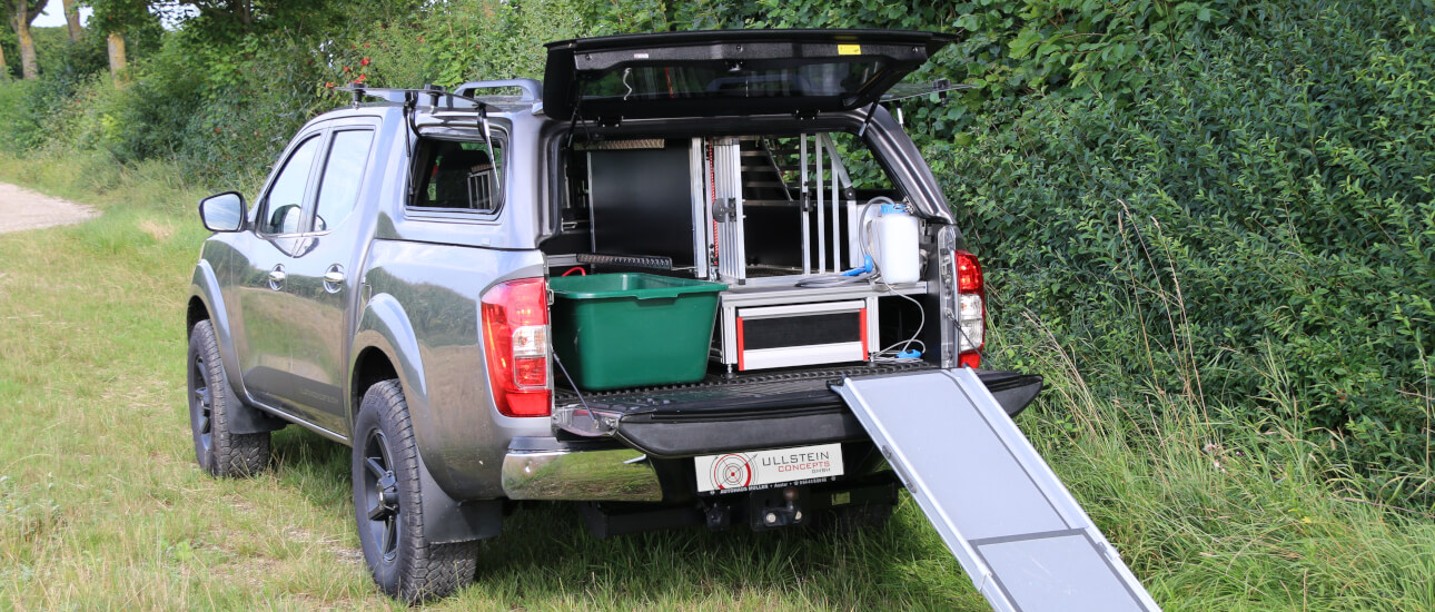 Die perfekte Lösung für alle Hundehalter, die Ihre Vierbeiner in Ihrem Pickup sicher mitnehmen wollen. Der Umbau unter dem Hardtop umfasst das Schiebeplateau Modular mit dem Montagekit (ohne Bohren). Darauf befestigt ist eine geschweißte, abschließbare Aluminium-Doppel-Hundebox mit herausnehmbarer Trennwand.