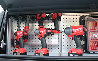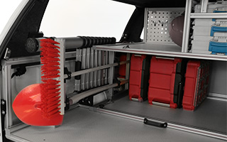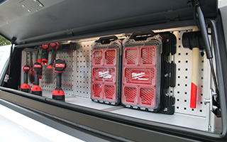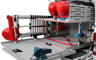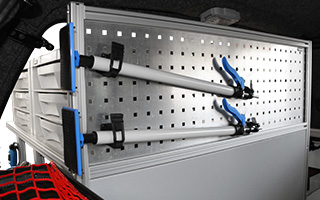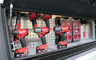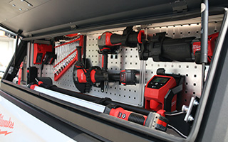With the various shelving and storage systems mounted onto the drawer, your tools are perfectly organised and stored safely. The additional storage systems on the sidewalls make full use of the truck bed.
