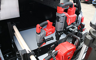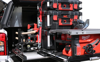 With our WORKS drawer (sliding platform) as a basis, that can be mounted directly onto the truck bed without any drilling work, you can conveniently access and store your equipment.