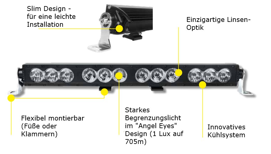 Die Firefly Lightbars sind, mit nur 70mm Tiefe und 38,5 mm Höhe, bemerkenswert flach. Die kompakten Strands Lightbars passen somit auch gut in den Kühlergrill der meisten Fahrzeuge. Auch das einzigartige Design setzt neue Maßstäbe.