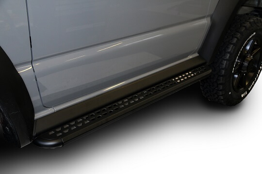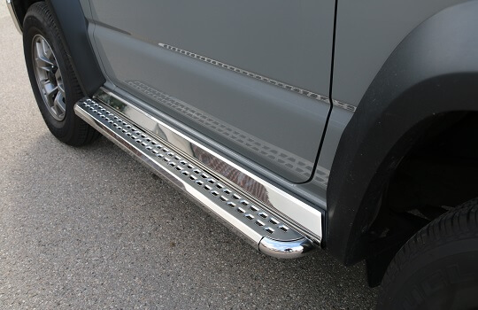 SEITENSCHUTZ: Unser Seitenschutz rundet das Offroadprofil Ihres Suzuki Jimnys perfekt ab und bietet wertvollen Schutz für Ihr Fahrzeug. Er gestaltet sich als Schwellerrohr inklusive schmalem Trittbrett, ideal als weiterer Schutz im niedrigen Offroad- Gelände. Alle Teile bestehen aus Edelstahl je nach gewählter Ausführung in hochglanzpoliert oder schwarz pulverbeschichtet FLANKEN-COVER: Die Edelstahl- Blenden werden an dem Kunststoffteil unter der Tür angebracht und bieten zusätzlichen Flankenschutz für Ihren Jimny. Die Verstärkung ergänzt sich optimal mit dem Seitenschutz und bewahrt Ihr Fahrzeug vor Steinschlägen. Erhältlich sind die Produkte je nach gewählter Ausführung hochglanzpoliert oder schwarz pulverbeschichtet
