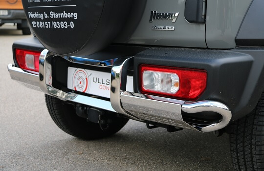 Mit seinem markanten Design passt sich unser Heckschutz optimal an das kantige Design des Jimnys und unserem Frontbügel Concept und Concept Plus, an. Der Heckschutz ist wie unser Frontschutzbügel KTL- oder pulverbeschichtet.